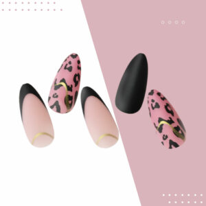 裸粉色法式,指間以黑色點綴,以豹紋跟純黑色相間跳色,個性感十足!