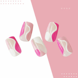 粉色、桃紅色完美在指尖交織,搭配白色線條點綴,更加俏麗甜美!
